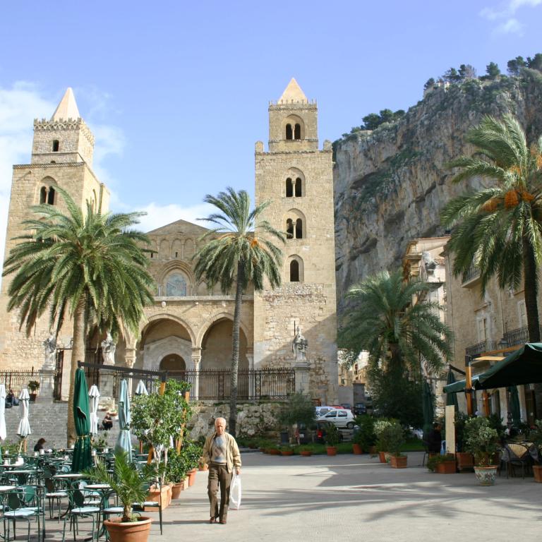 You'll walk with frequent, breathtaking views of central Sicily, Mount Etna, and the sea. At the end of the journey, you descend to the Mediterranean scrubland and the emerald sea of Cefalù, known for its Norman Cathedral and Byzantine mosaics.