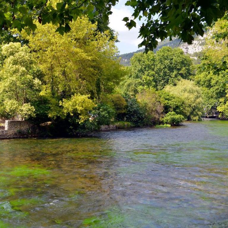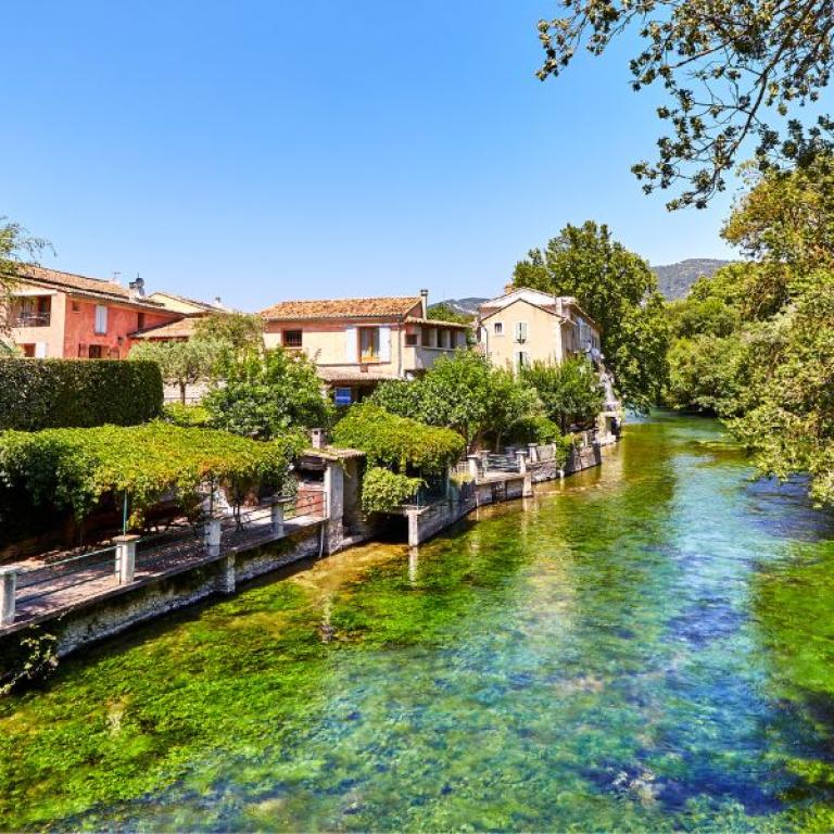 In Fontaine-de-Vaucluse, an underground river springs to the surface, creating a charming fountain of green-blue water; on the trails, you'll be accompanied by the sound of crickets in the countryside.