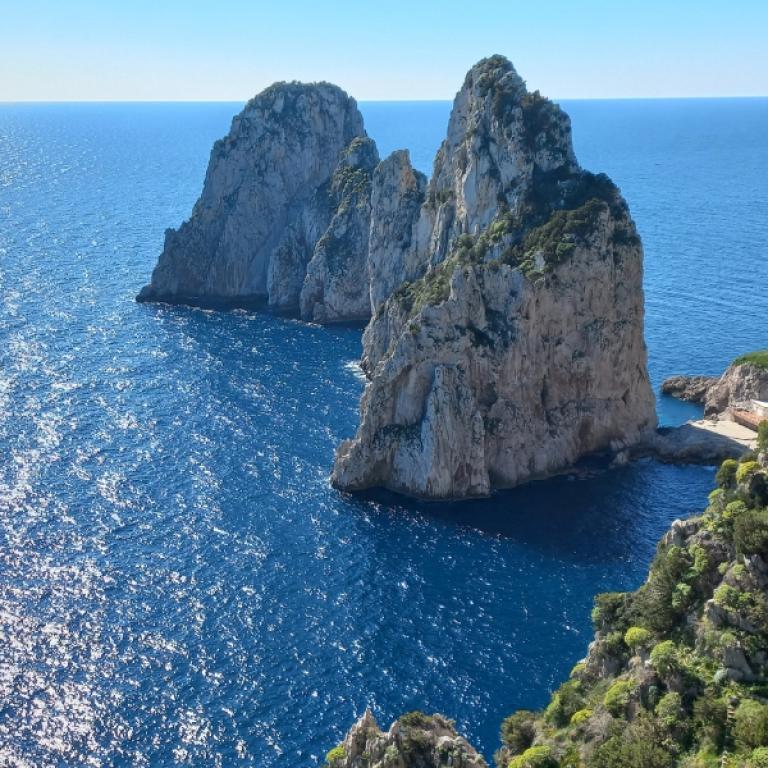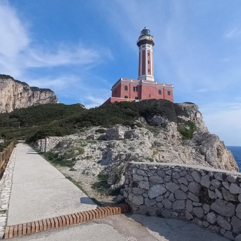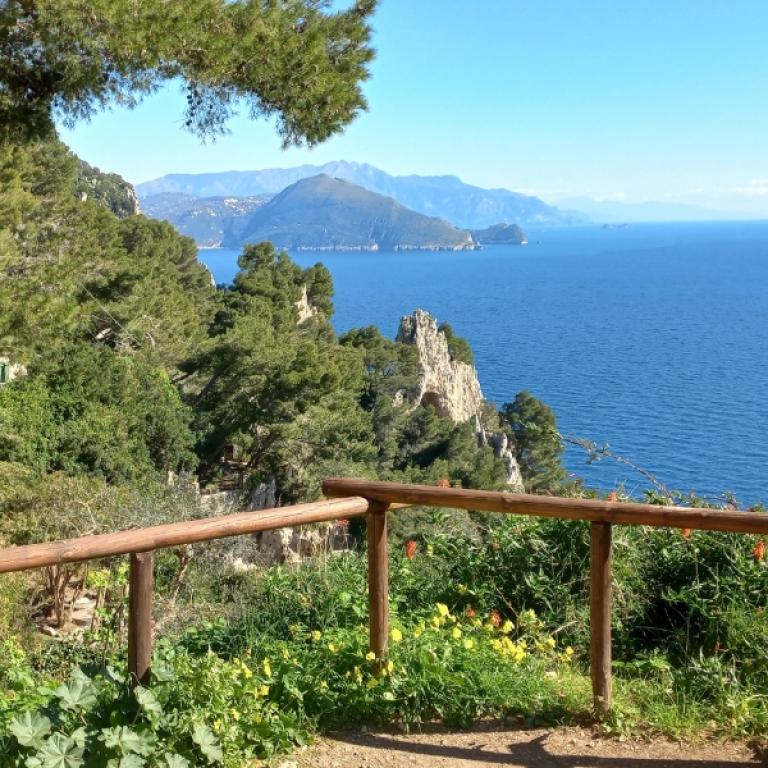 L'aria è fresca e profumata di mare, una brezza leggera che si infila sotto i vestiti e stempera il calore del sole; si riempie ad ogni passo di profumi diversi - la fragranza dei limoni, il profumo intenso dei fiori selvatici che crescono ai lati del sentiero, la brezza salmastra che soffia dal mare. La giornata è talmente limpida che nel panorama che si estende davanti ai tuoi occhi puoi vedere distintamente ogni isola, ogni dettaglio - inclusa l'isola di Capri, nella cui natura incontaminata hai camminato proprio ieri, tra fari, fortini e grotte aperte sul mare, scintillanti d'azzurro.