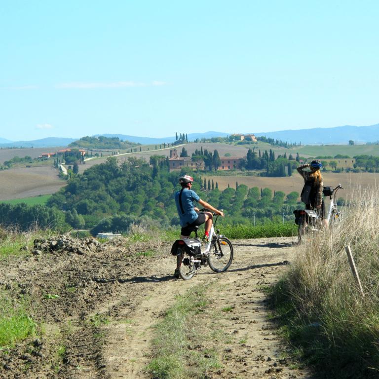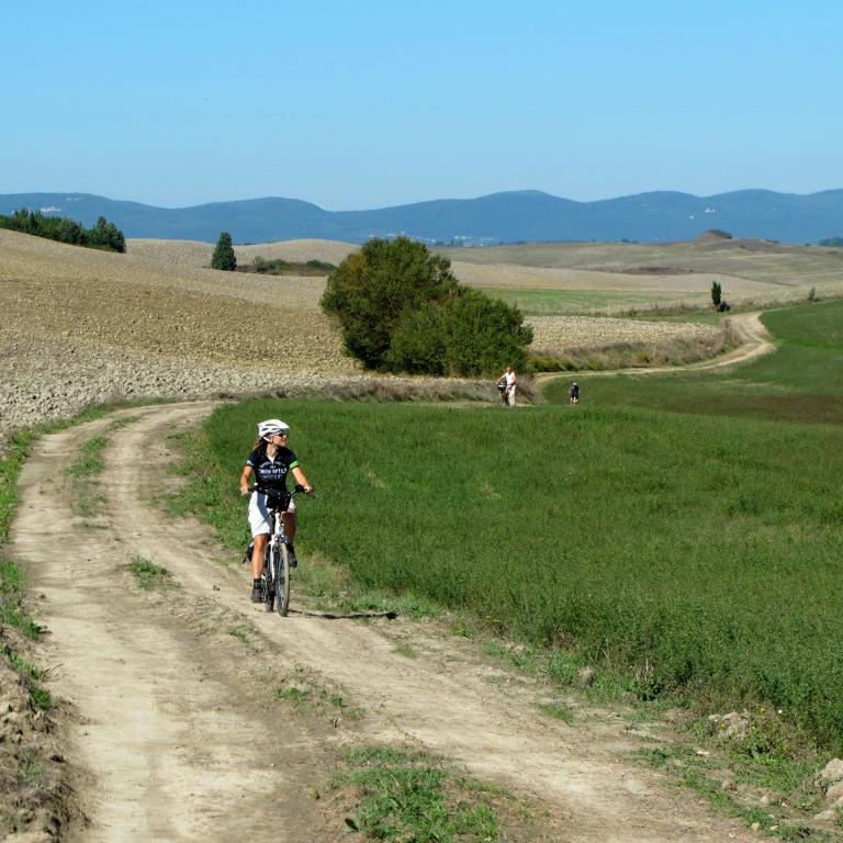 You will be continuously tempted to put your bike down and spoil yourself with a tasting of local products: you will cross the vineyards of the Brunello di Montalcino, one of the best Italian wines, and the production zones of the cacio di Pienza (type of cheese), before entering one of the most important areas for the production of extra-virgin olive oil, between Bolsena and Montefiascone.