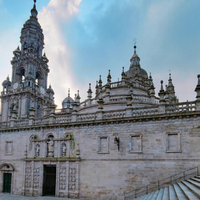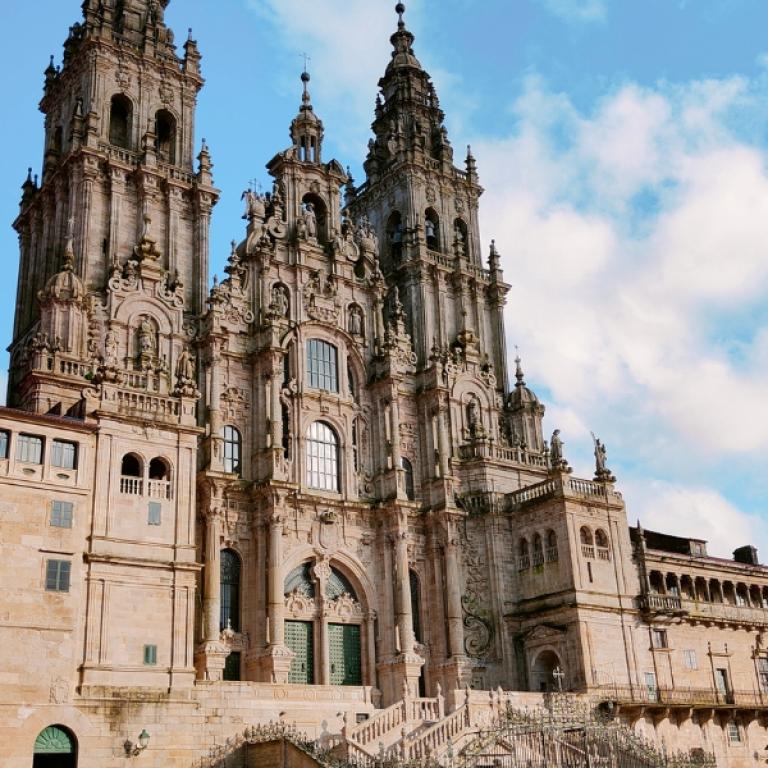 Y al final del camino, el momento que todo peregrino recuerda: entrar en la Praza do Obradoiro, donde la catedral de Santiago finalmente se alza ante ti.
