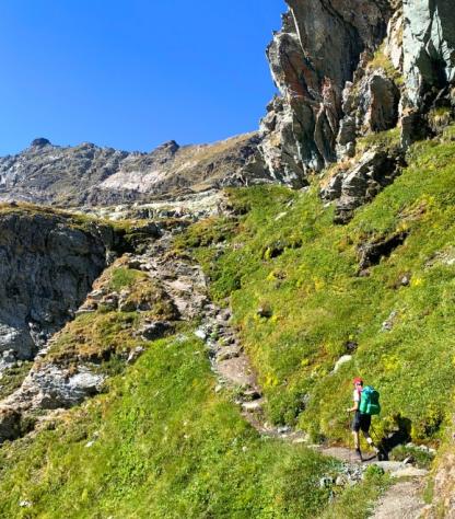 I primi passi sulla VIa Francigena del Nord sono decisamente spettacolari: cime frastagliate, un lago alpino che scintilla placido al sole, un ostello che accoglie i pellegrini da secoli e secoli; e poi l'aria fredda di montagna che ti solletica piacevolmente il naso, mentre ti guardi intorno e capisci che sì, il tuo viaggio è decisamente iniziato.