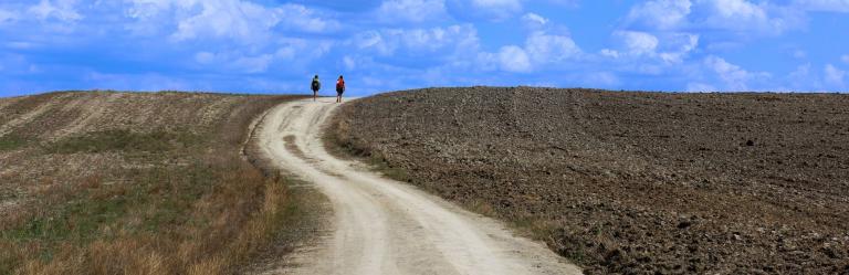Sei pronto a diventare i protagonisti in una cartolina? Nella prima parte di questo viaggio lungo la Via Francigena Siena Viterbo camminerai lungo le leggendarie strade bianche senesi per chilometri e chilometri, attraversando la Val d’Arbia e la Val d’Orcia, icone del paesaggio toscano. Visiterai borghi meravigliosi come Bagno Vignoni, con l’enorme piscina termale al centro della piazza, e Radicofani, la cui rocca domina la Toscana meridionale. Entrato nel Lazio, rimarrai stupito dalla bellezza del Lago di Bolsena, e affascinato dagli antichi basolati della Via Cassia, ancora integri dopo 2000 anni, prima di visitare l’incantevole centro storico di Viterbo.